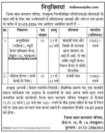 - Read District Child Welfare Council Panchkula Vacancy 2025 full notification before apply.